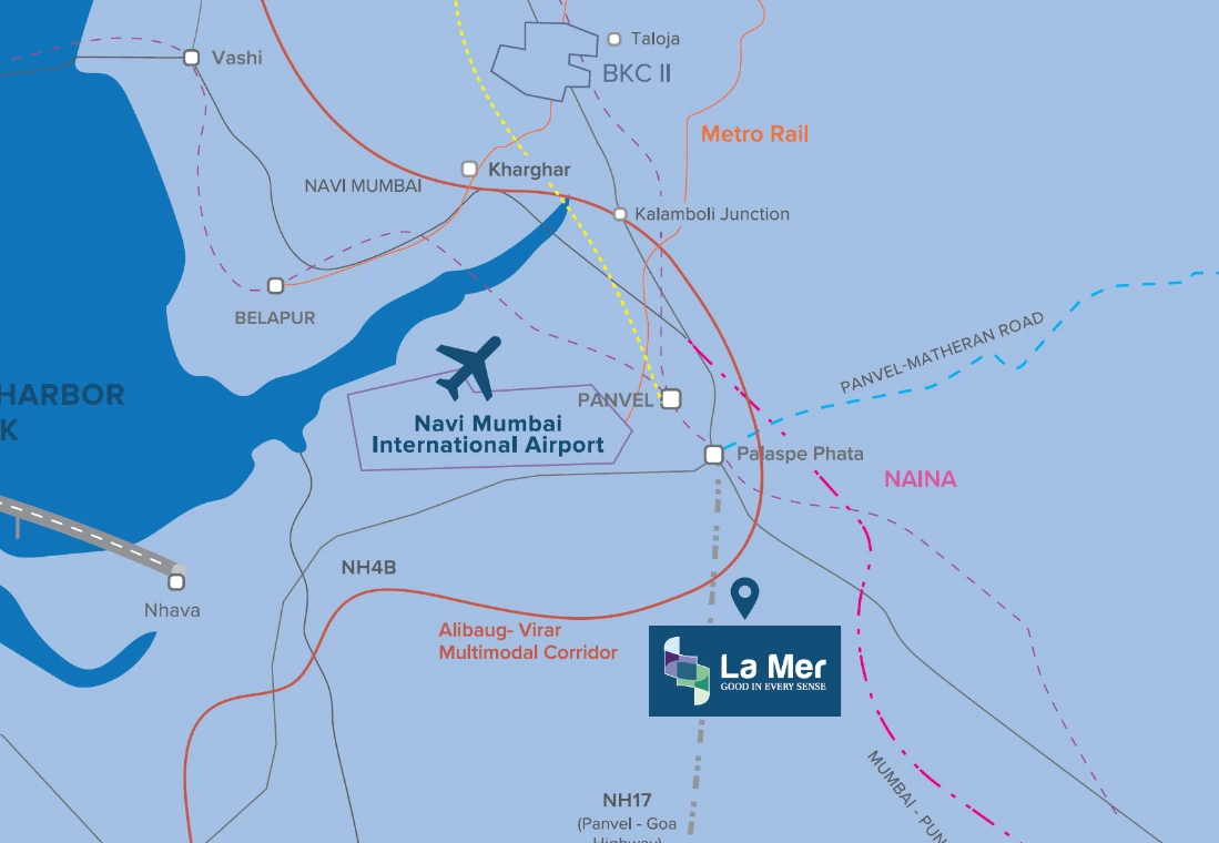 Looking for your dream home in Panvel? La Mer Growth City in Palaspe, Panvel is a thoughtfully planned residential township offering modern living amidst nature. Strategically located near major highways and transport hubs, the project provides excellent connectivity to Mumbai, Navi Mumbai, and Pune. This upcoming residential destination features well-designed homes with lifestyle amenities such as landscaped gardens, clubhouse, children's play area, and 24x7 security. Whether you're a first-time homebuyer or an investor, La Mer Growth City Panvel offers great value and future growth potential.